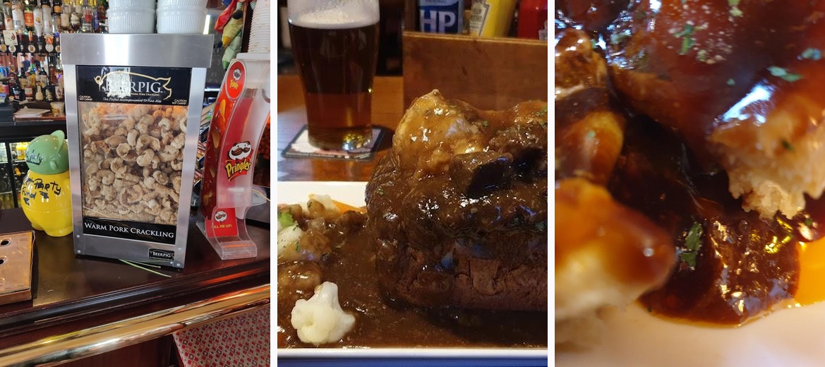 What a fantastic pub. Visited twice with some work colleagues and I have to say that I would definitely recommend this pub and we will be going again. The bar staff we encountered on both nights were just fabulous. Friendly and helpful with little waiting time to be served. The prices are very reasonable, just over £16 for 3 pints of premium lager is great value. We had the steak pie with chips and the food is amazing. Triple cooked chips and a steak pie full of big chunks of meat and a rich gravy. Highly recommend.